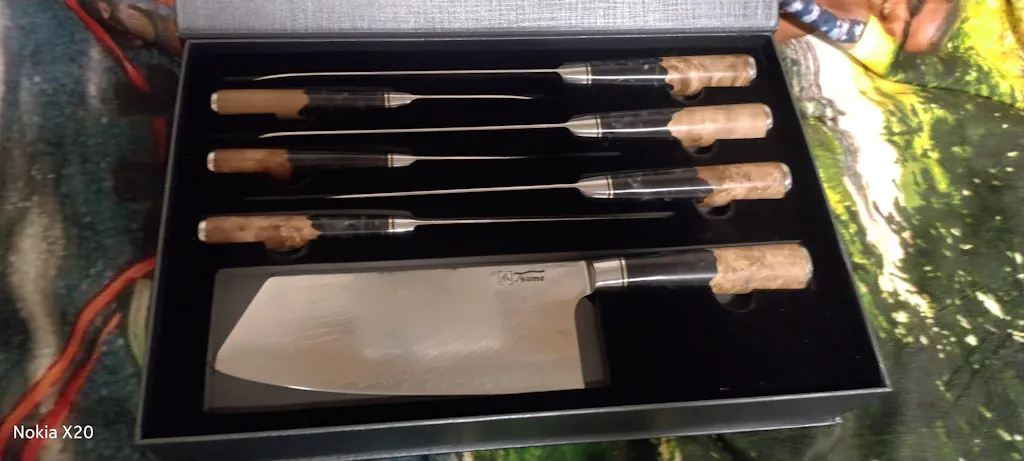 Unser Profi Messerset mit 7 einzigartigen Messern ist das ultimative Werkzeug für alle Küchen-Enthusiasten. Jedes Messer erfüllt eine spezifische Aufgabe und gemeinsam können sie jede kulinarische Herausforderung bewältigen. Egal, ob du grob oder fein schneiden möchtest, ob du große oder kleine Lebensmittel zubereiten willst - dieses Profi Set hat alles, was du brauchst. Beeindrucke dich und deine Gäste mit den besten Messern auf dem Markt und genieße es, endlich alle Werkzeuge zu haben, die du brauchst, um ein Meister in der Küche zu werden.
